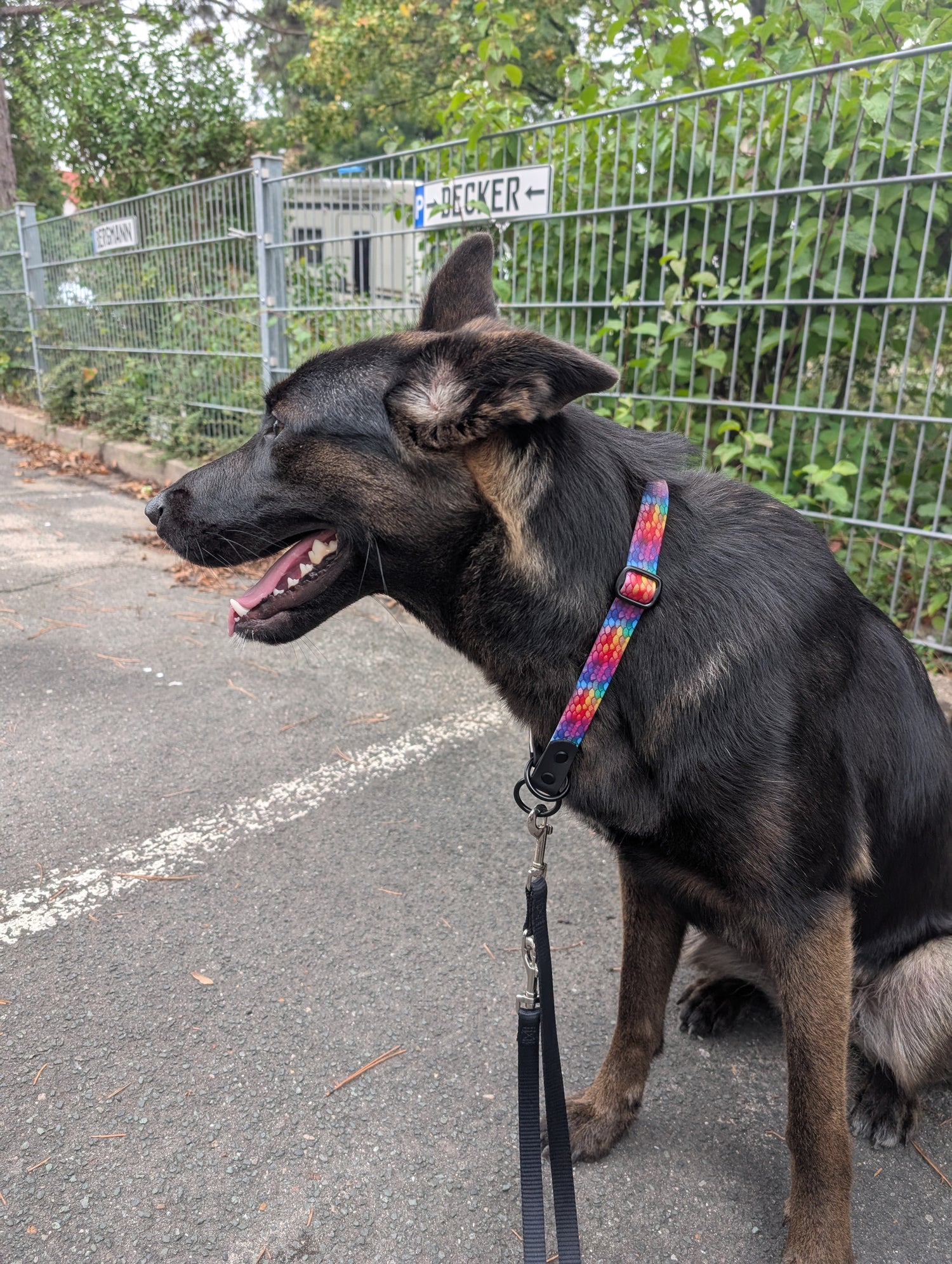 Hier seht ihr einige unserer vierbeinigen Freunde mit ihren Lieblingsleinen, Halsbändern oder Sets – handgemacht und individuell wie sie selbst.