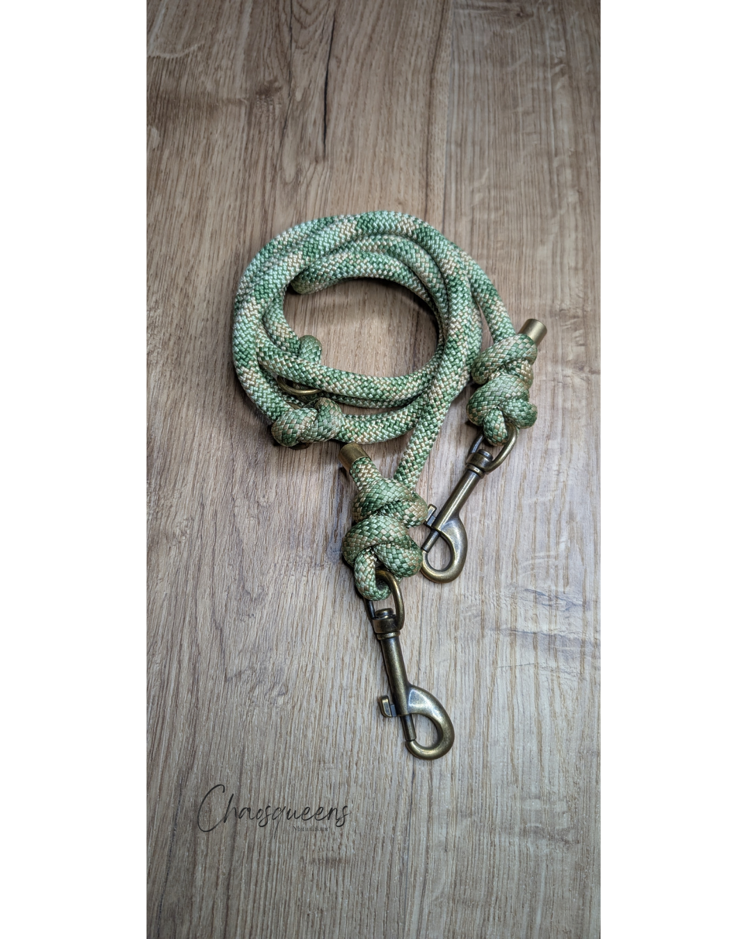 Hergestellt aus hochwertigem 8mm PPM-Seil im eleganten Wiesen-Look – verschiedene Grüntöne in edler Metallic-Optik spiegeln die lebendige Frische einer Frühlingswiese wider. Die goldenen Beschläge harmonieren perfekt mit dem schimmernden Seil und verleihen der Leine einen besonders luxuriösen und natürlichen Look.