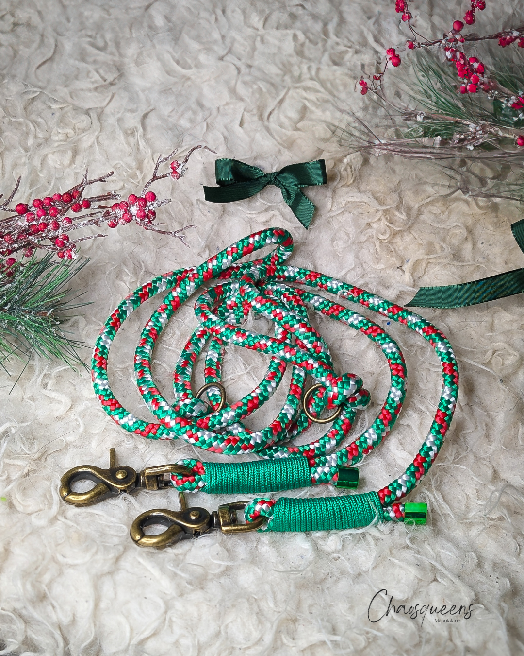 Diese Leine ist die perfekte Ergänzung für euren Weihnachtslook. Das strapazierfähige PPM-Seil in der eleganten Stechpalmen Farbkombination aus Grün, Rot und Weiß.
