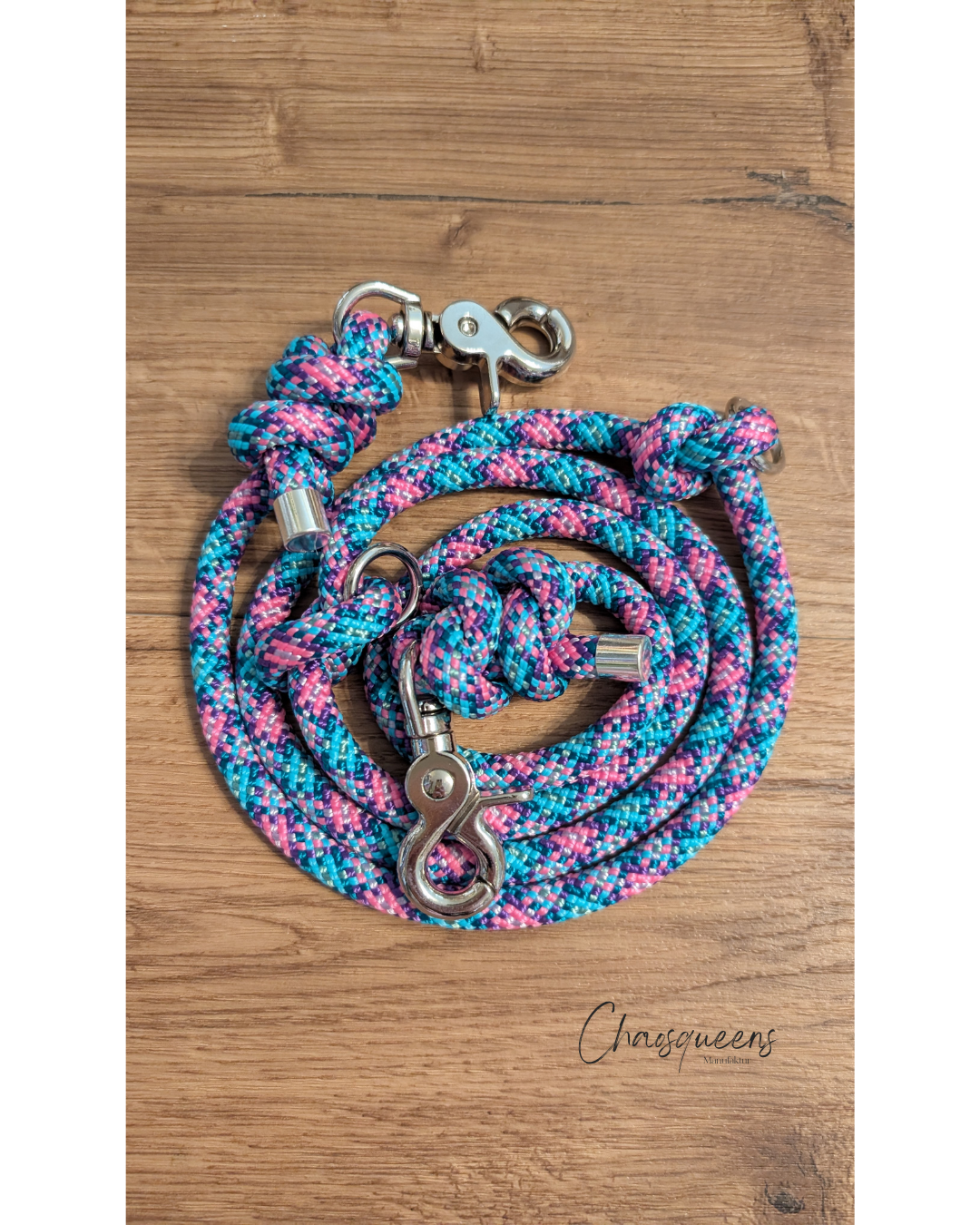 Hergestellt aus hochwertigem PPM-Seil, ist die Leine nicht nur ein optisches Highlight, sondern auch ein echtes Leichtgewicht, extrem robust und absolut wasserresistent. Ein kleiner Sternenregen? Ein Witz! Diese Leine ist für jedes Abenteuer, jedes Wetter und jeden Trip ins Unbekannte bereit. Die 8 mm Materialdicke macht sie schmal und geschmeidig, während die glänzenden silbernen Beschläge für einen coolen, kosmischen Touch sorgen.