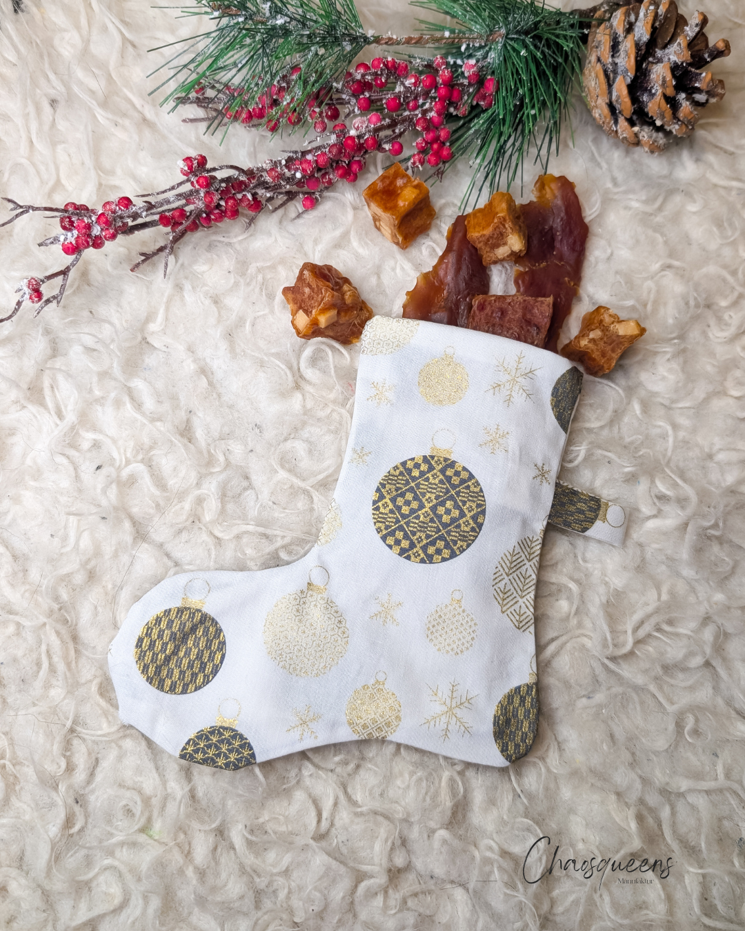 Mach die Weihnachtszeit unvergesslich! Diese liebevoll genähte Weihnachtssocke ist das ideale Accessoire, um deinem Hund eine festliche Freude zu bereiten oder einem andern Hundemenschen. Sie ist perfekt als stilvolle Deko oder als persönlicher Geschenkbeutel.