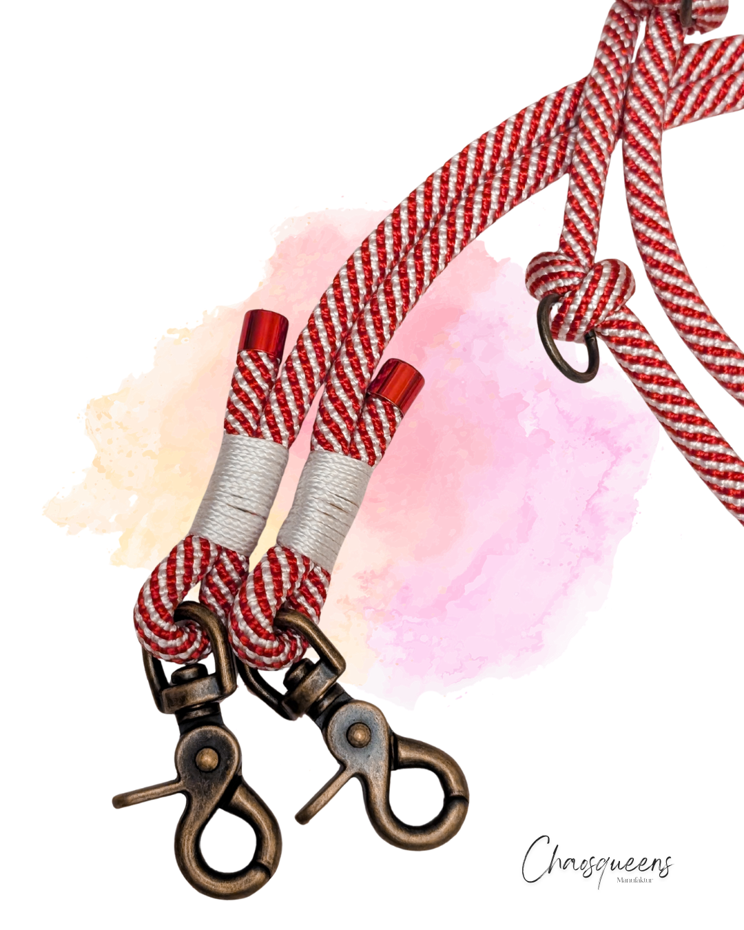 Diese Leine ist die perfekte Ergänzung für euren Weihnachtslook. Das strapazierfähige PPM-Seil in der eleganten Zuckerstangen Farbkombination aus Rot und Weiß.