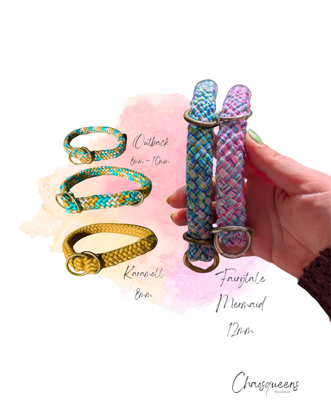 Dieses stilvolle, Halsband aus hochwertigem 8mm oder 10mm dickem PPM-Seil vereint modernes Design mit maximaler Funktionalität. Es ist extrem leicht, widerstandsfähig und wasserabweisend, was es zum idealen Begleiter für jedes Wetter und jedes Abenteuer macht. Zusätzlich kann der Stopp stufenlos verstellt werden.